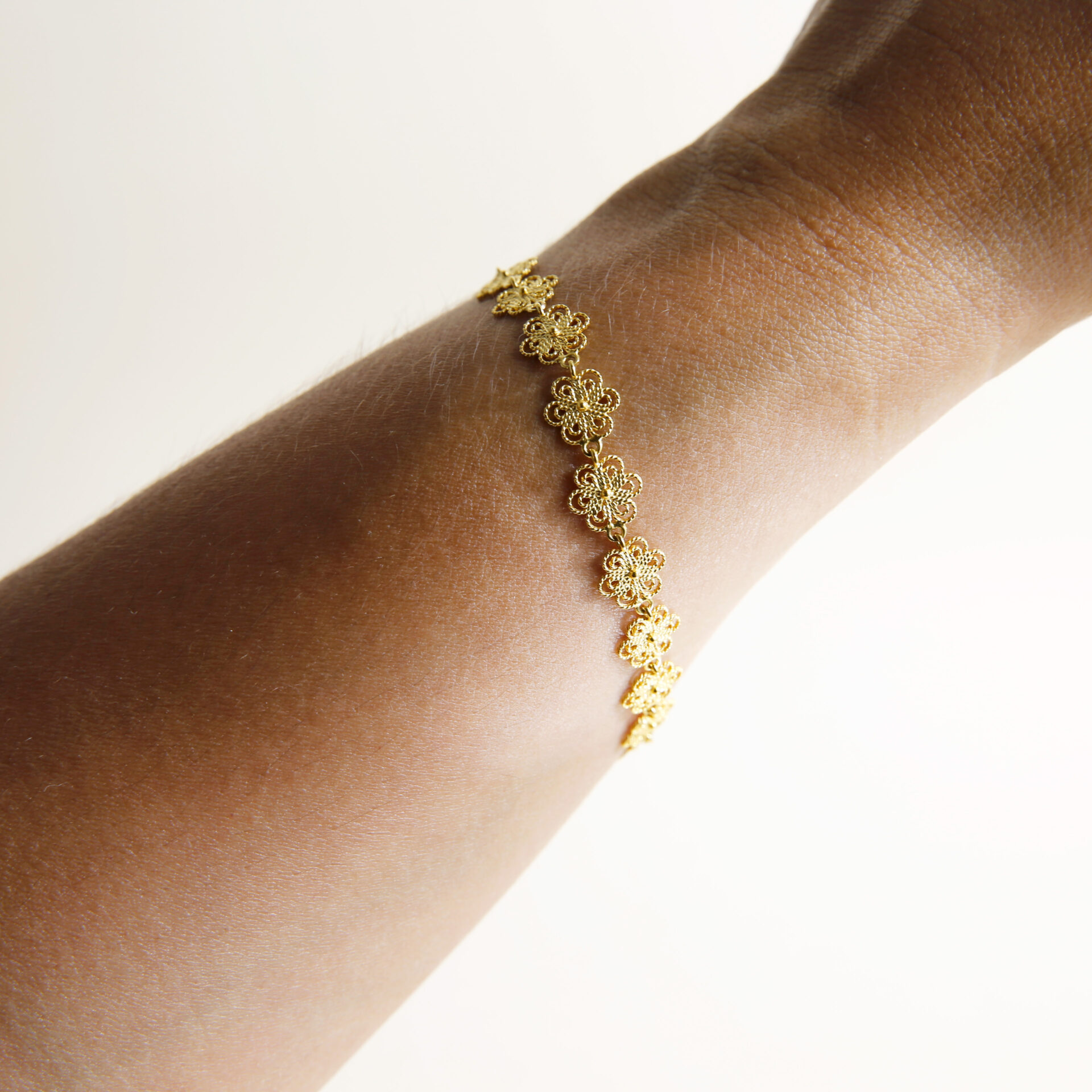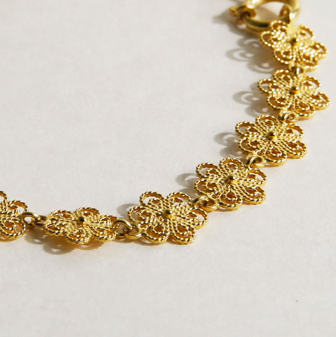 A filigrana é aqui representada num intrincado padrão de flores desenhadas com os fios de filigrana em ouro amarelo. A mais bela e moderna filigrana portuguesa na qualidade Leitão & Irmão.