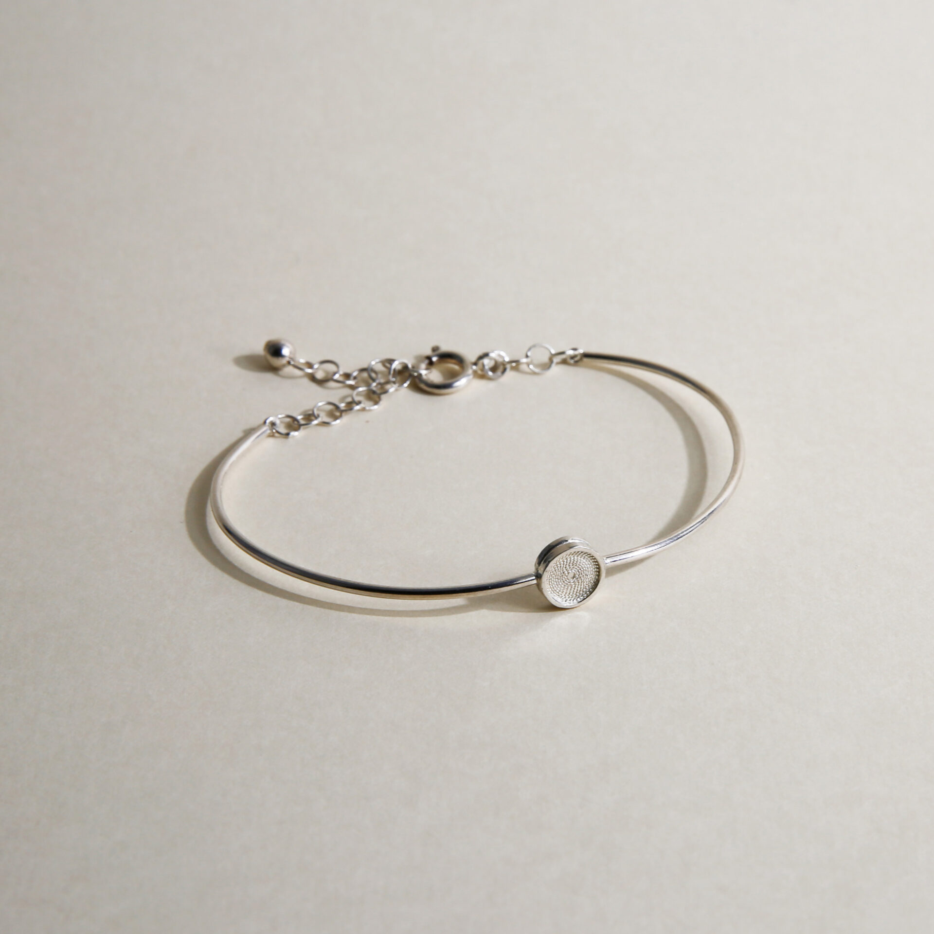 Esta peça dá destaque numa pulseira tipo escrava ao “Rodilhão”, que consiste em fazer um rodilhão com os fios de prata, de forma idêntica ao rodilhão que as mulheres portuguesas colocavam na cabeça para trasportar cestos.