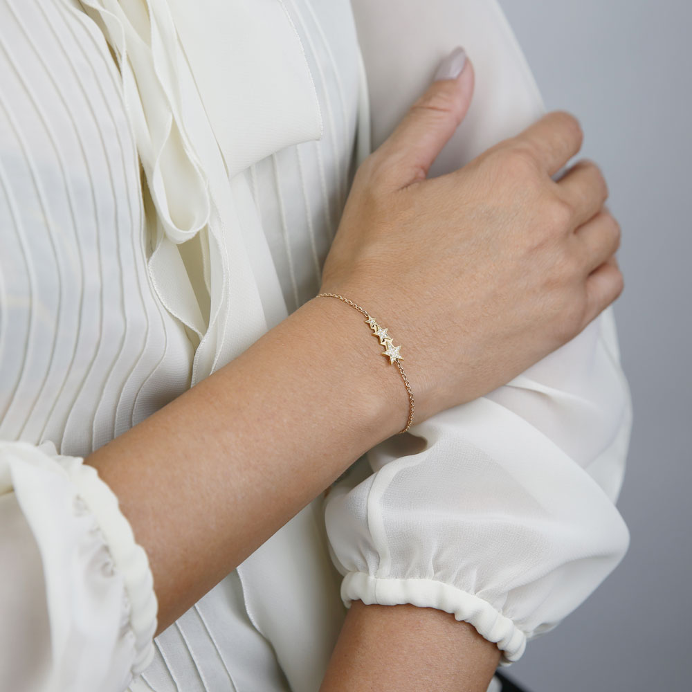 A pulseira Star Constellation, com um inovador fecho ajustável, em ouro amarelo e 18 diamantes.