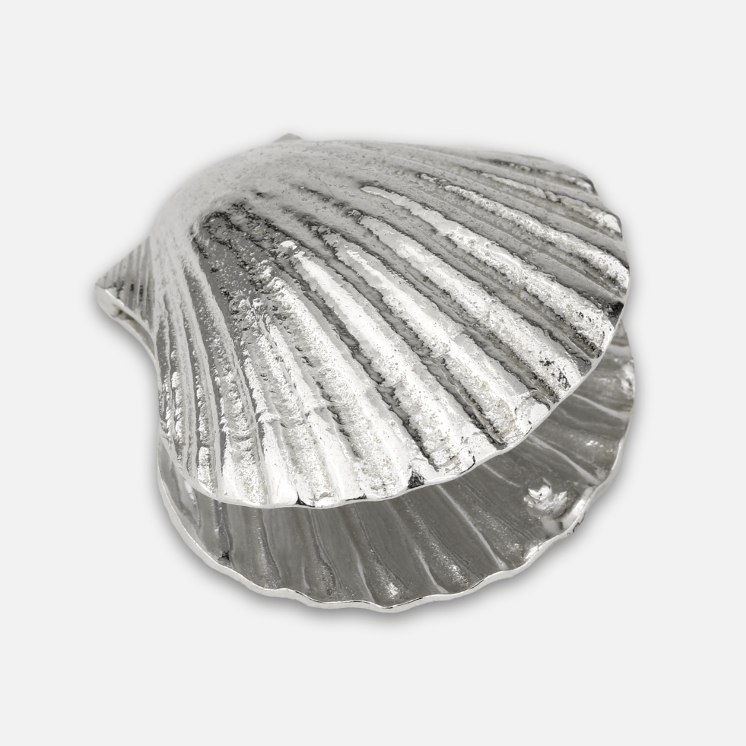 A vieira, uma iguaria da gastronomia mundial. Reproduzimos a sua concha numa caixa em prata, perfeita para colecionar, para oferecer aos amantes da natureza, a quem tem tudo ou uma caixa para colocar os comprimidos.